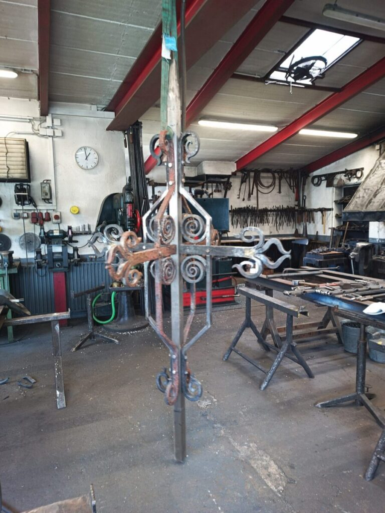 Teil der Arbeiten ist die Erneuerung der Turmspitze mit samt ihres Kreuzes. Die Besonderheit ist, dass aus dem alten Kreuz nun ein Neues entsteht, das in der Kunstschmiede Jürgens in Meschede gefertigt wird.