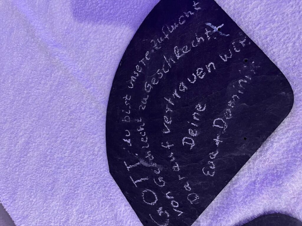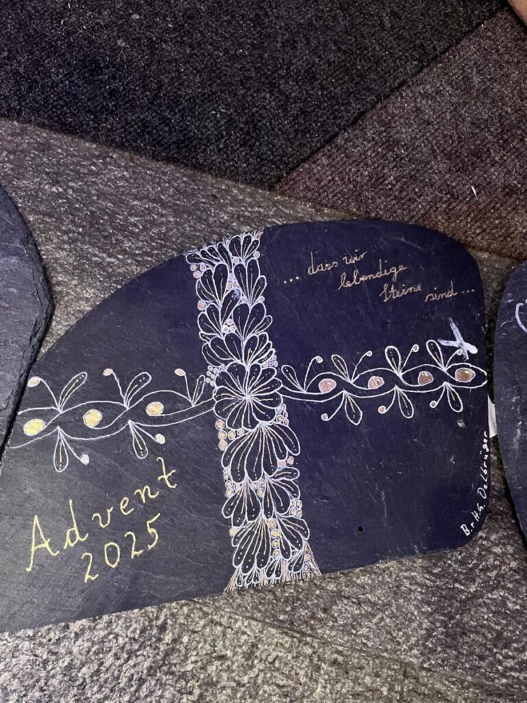 Kommen Sie im Advent 2025 in die Kirche und holen Sie sich Ihre persönliche Schieferplatte ab. Gegen eine kleine Spende können Sie die Platte mit nach Hause nehmen. Tragen Sie sich bitte mit Namen und Kontaktdaten in die ausliegende Liste ein.